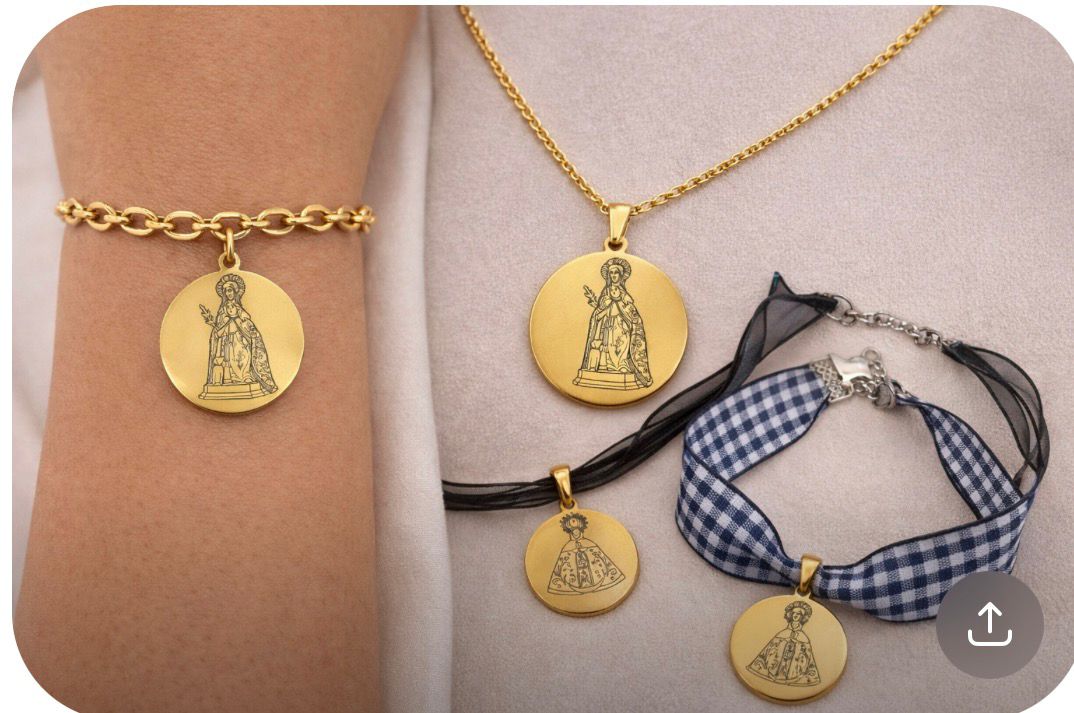 Medalla con diseño inspirado en San Pascual y Santa Quiteria, pensada para quienes quieren llevar siempre cerca el símbolo de sus fiestas y su identidad local. Disponible en formato pulsera o collar, es un detalle perfecto para lucir con orgullo, regalar o completar tu colección de recuerdos especiales.